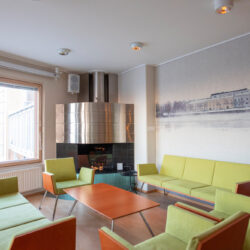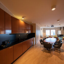 - Keittiö, jonne voi tuoda omat ruuat ja juomat, tai tilata sopivat tarjoilut Ravintola Pripolista.