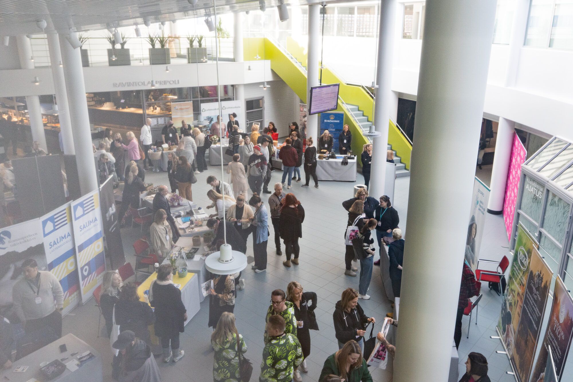 Sujuvuutta tapahtumaasi tuo tärkeä esteettömyys, joka mahdollistaa esteettömästi sujuvan kulkemisen aina parkkipaikalta sisälle ja sisällä eri tilojen välillä. Tapahtuma-aula sijaitseekin kätevästi Pripolin 1. kerroksessa heti eteisaulan, Auditorion, kokoustila Ajatuksen sekä ravintola Pripolin yhteydessä. Yhdistämällä nämä kaikki tilat, mahdollistaa tämä iso ja valoisa kokonaisuus upeasti isotkin tapahtumat jopa 450 hlölle – ja vieraiden viihtyvyys on taattu!