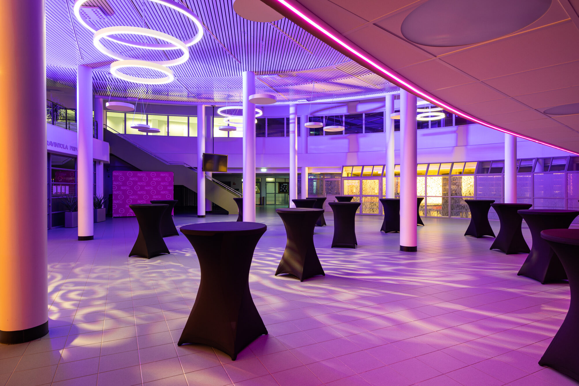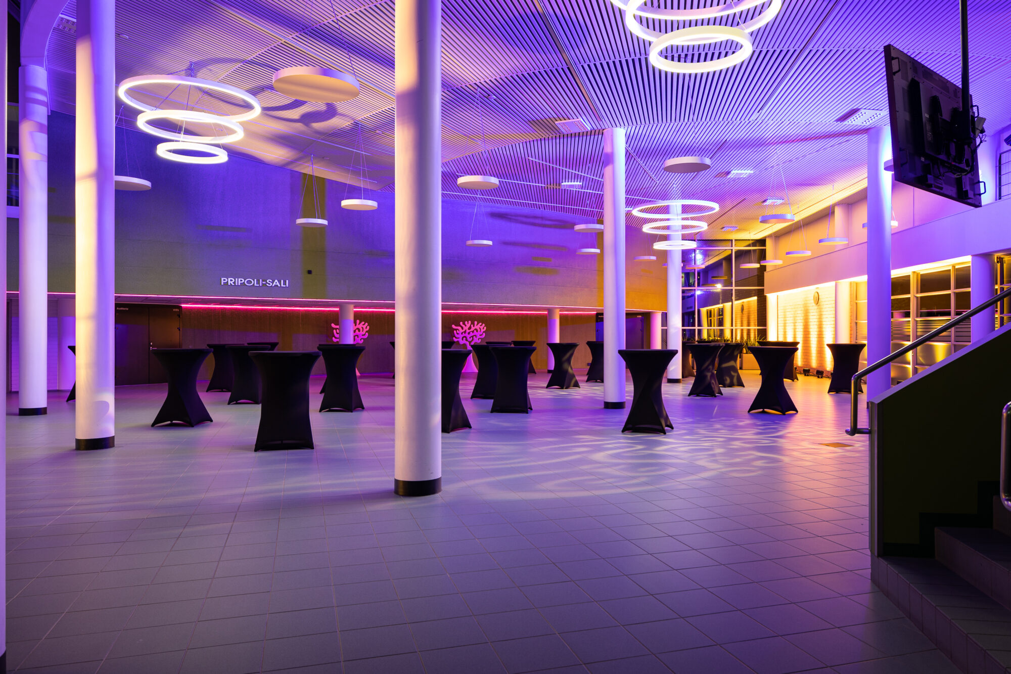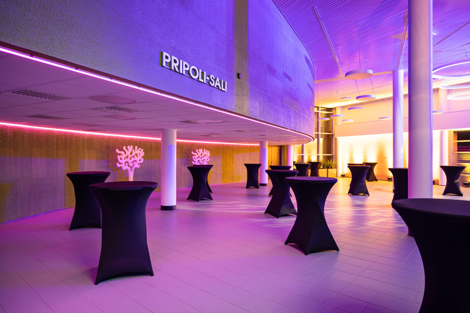 Näyttävä, valoisa, avara ja moneen muuntautuva Tapahtuma-aula avautuu upeana monenlaisiin hetkiin. Mikäli suunnitelmissasi on verkostoitumis- tai cocktailtilaisuus, messut, asiakas- tai yritystapahtuma – tervetuloa Pripoliin! Korkean salin upeat design-valaisimet luovat uniikin tunnelman juhlatilan illallispöytiin, iloiseen vuosijuhlaan tai vaikkapa seminaaripäivän jatkoille.