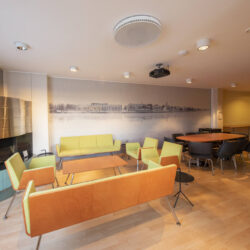 Sauna & Oleskelu on parhaimmillaan yrityksen sisäisissä palavereissa, jotka mahdollisesti jatkuvat saunomisen merkeissä työajan jälkeenkin. Mutta viihtyisä tila soveltuu erinomaisesti myös monenlaiseen pienen porukan kokoustamiseen, työpajoihin ja vaikka hallituksen kokouksiin. Saunakabinetin sohvaryhmä sekä 10 hlön neuvottelupöytä tarjoavat istuinpaikkoja kaikkiaan 19. Tilasta on myös käynti pienelle parvekkeelle.